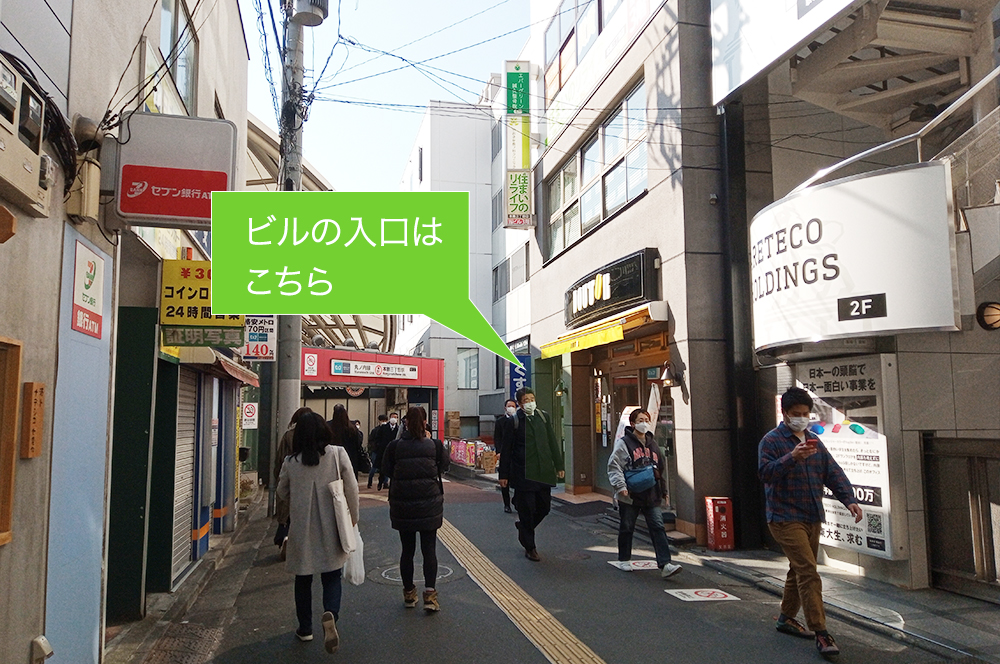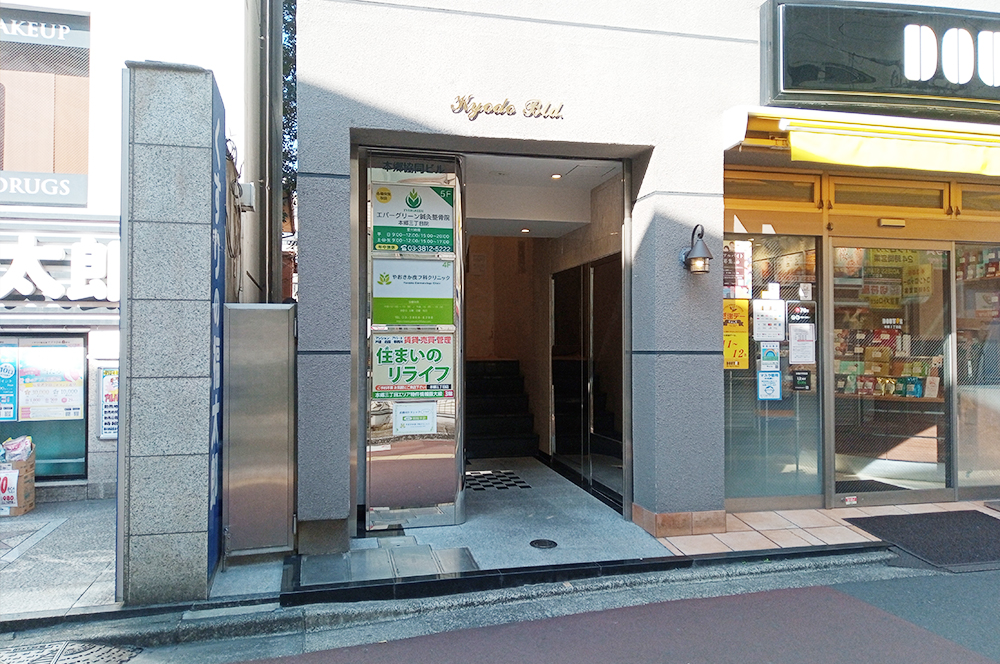 こちらの通り沿い右手に当クリニックがございます。ビル入り口からお入りください。