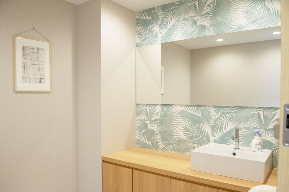お帰りの前にこちらのパウダールームをご利用いただけます。