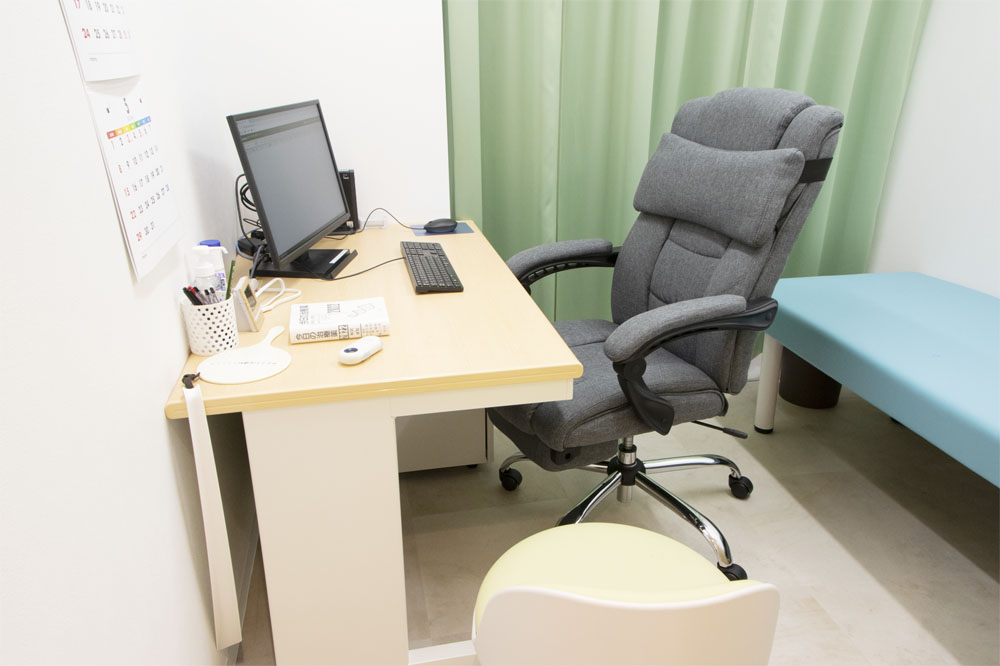 明るく落ち着きある診察室にて院長がお待ちしております。お悩みのこと、症状、治療に関する不安や疑問などご相談下さい。