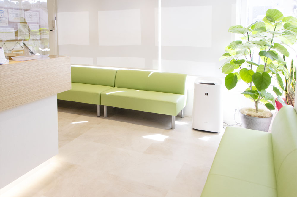 受付を済まされましたら順番にお呼びしますので、こちらにてお待ちください。明るくリラックスできるような空間になっています。